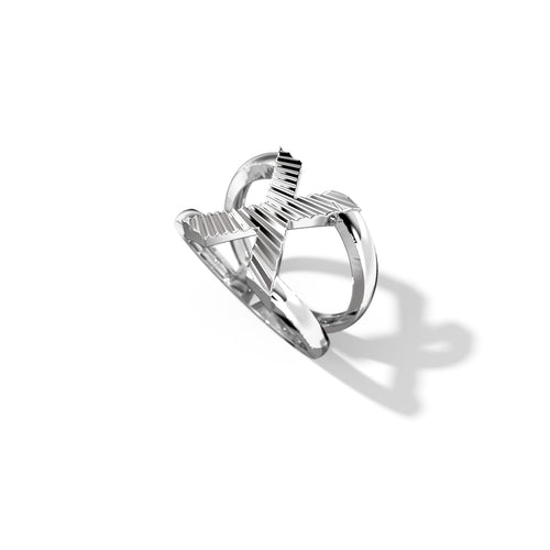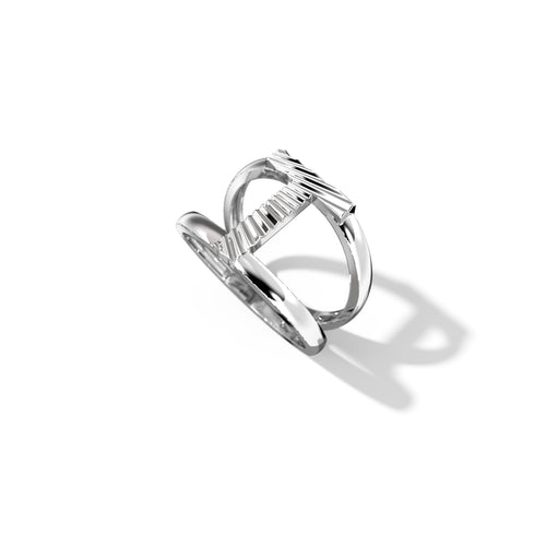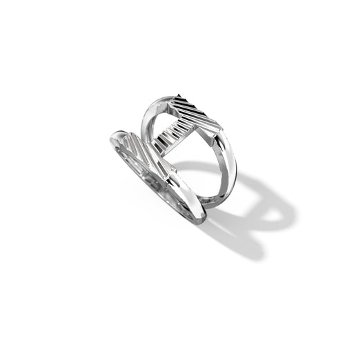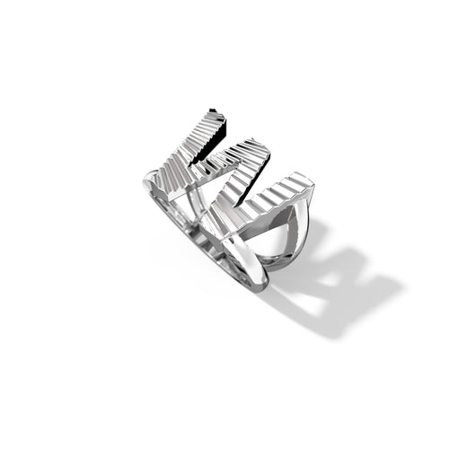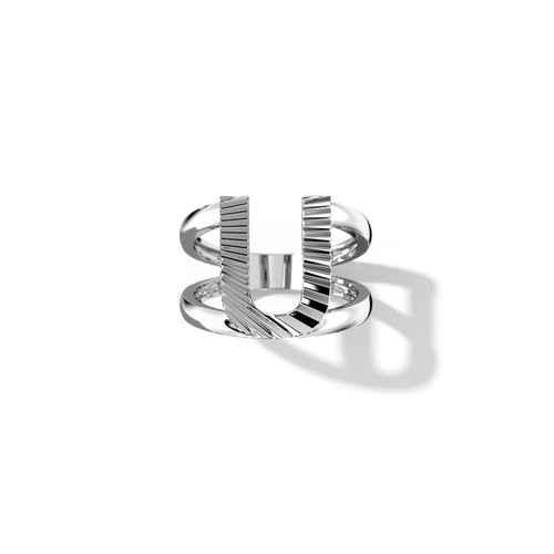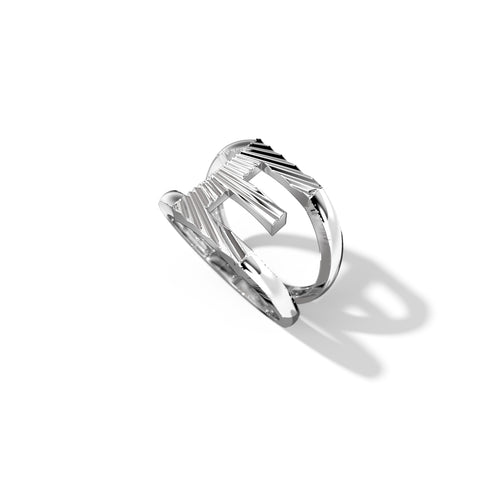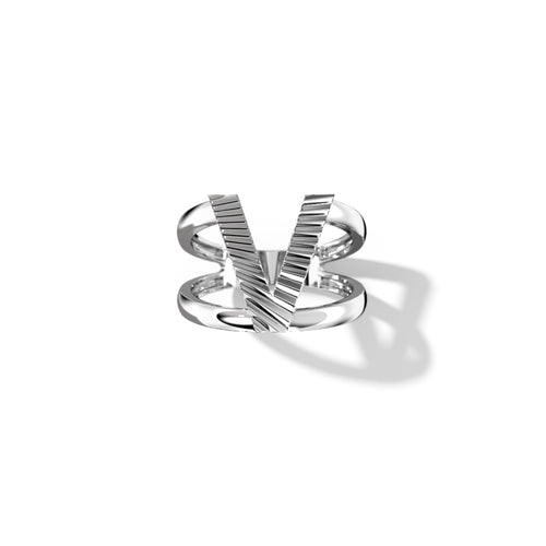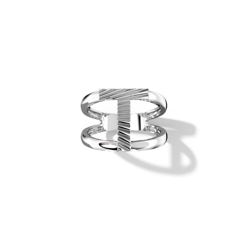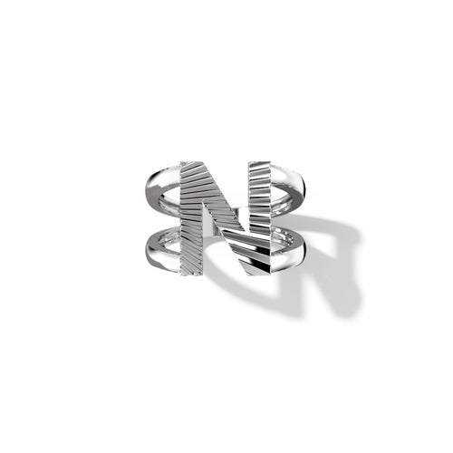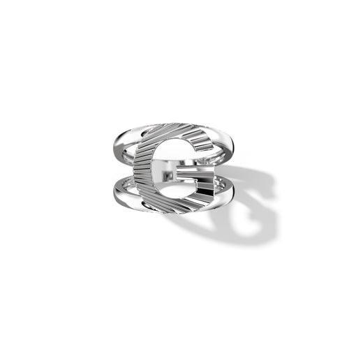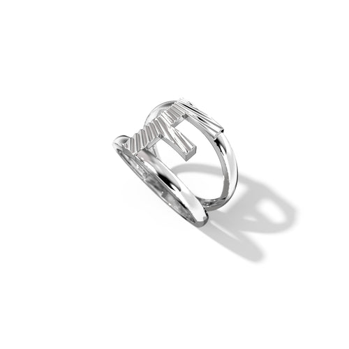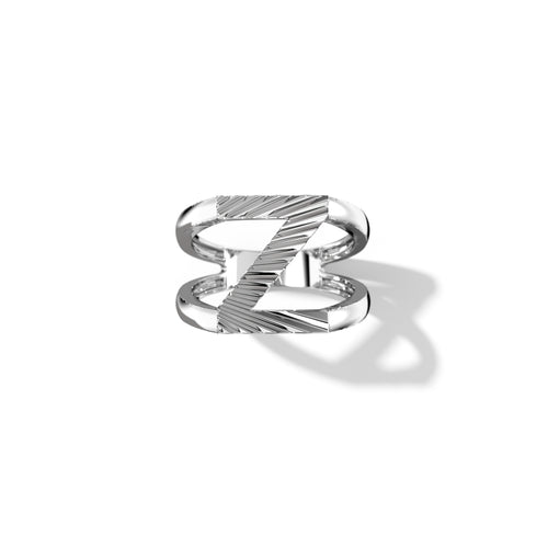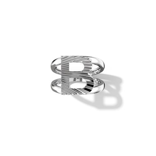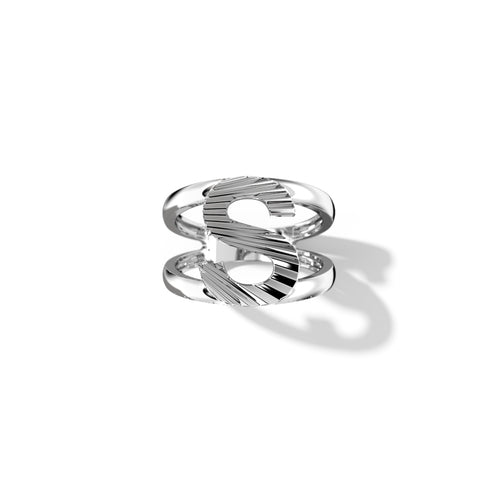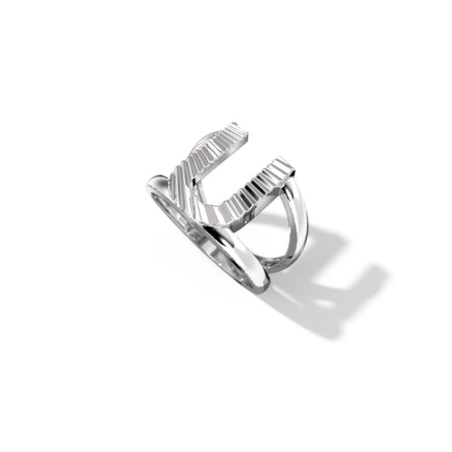 Zoom Fluted Silver Split Letter Shank Rings